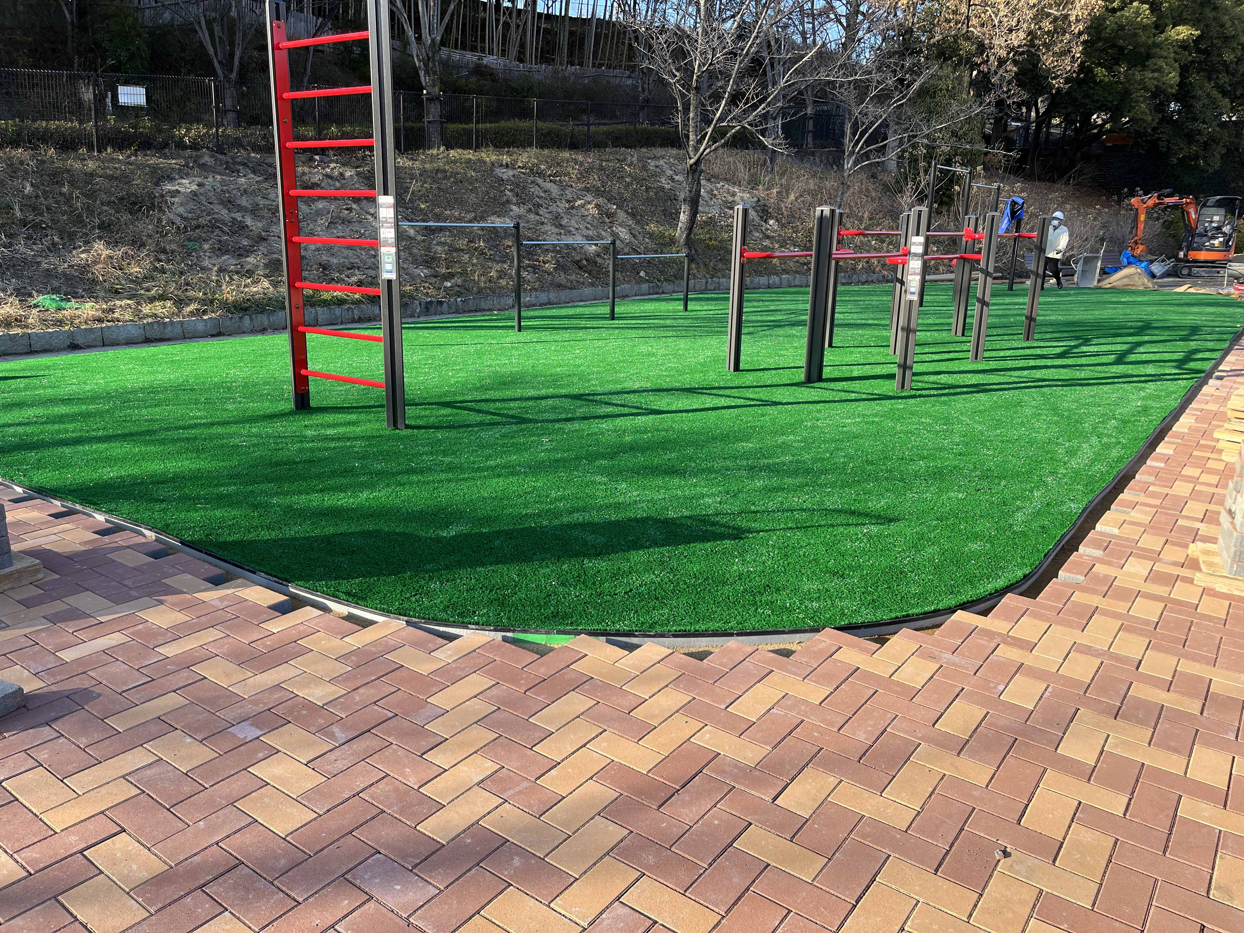 寝屋川公園花の道人工芝敷設